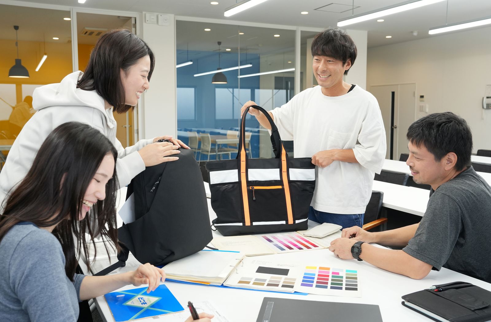 鞄のデザイン提案からサンプル作成、製造・検査・配送まで自社で手がける。