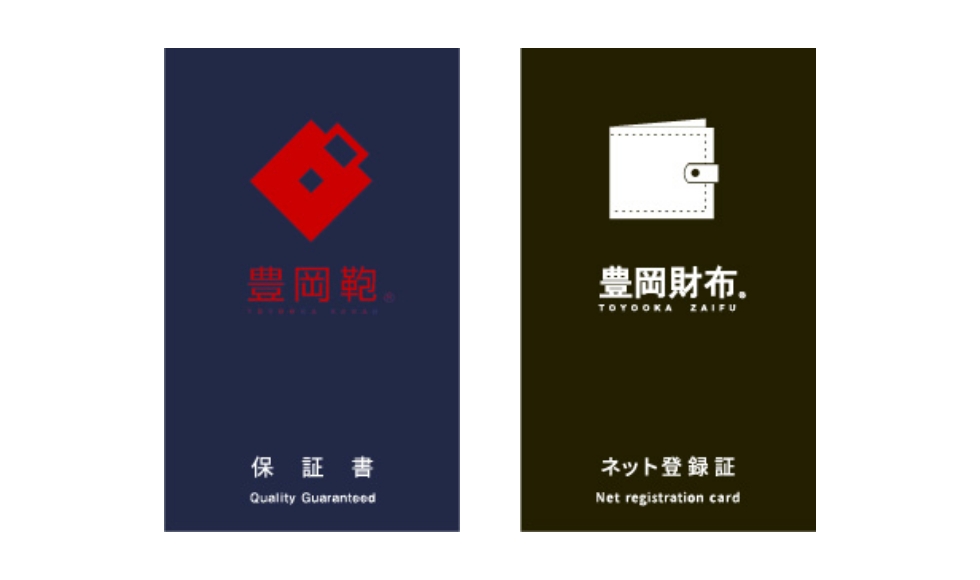 「豊岡鞄」「豊岡財布」には、保証書が同封されています。 この保証書には、その鞄を製造した企業名・認定製品番号などが記載されており、保証登録の際に必要となります。保証登録は、会員登録後にマイページよりご登録いただけます。
