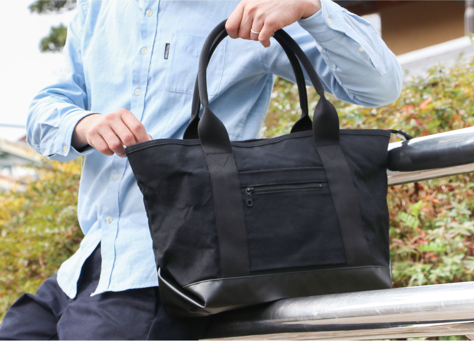 • 軽量かつ高撥水、高耐久。電子機器類の持ち運びにも最適です。荷物が少ない日には通勤バッグとしても利用できるため、ミニマリストなビジネスマンにもおすすめです。