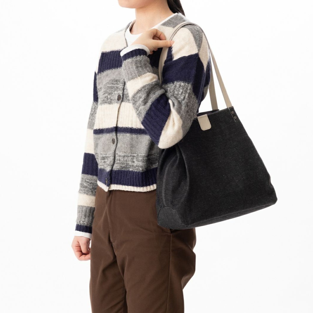 口元を閉じる事でシルエットが変わる肩掛けトート。
