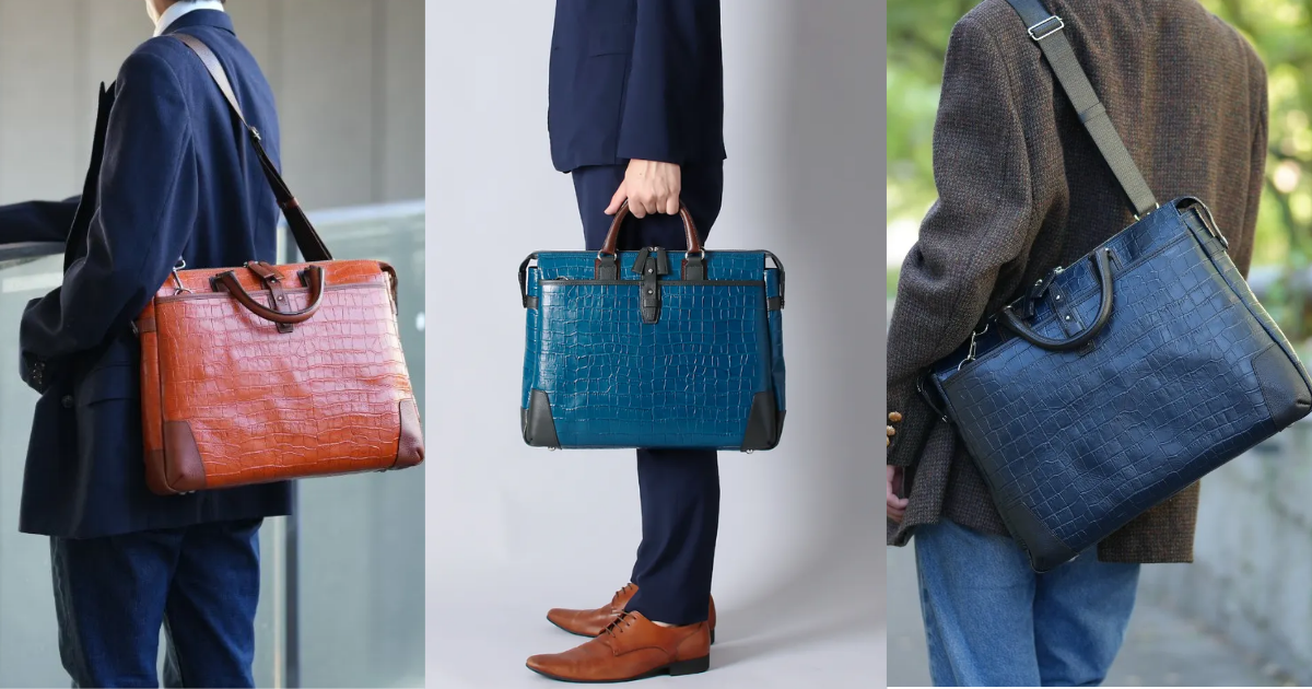 上質なクロコダイル調レザーで仕立てた「大人のビジネスバッグ」。