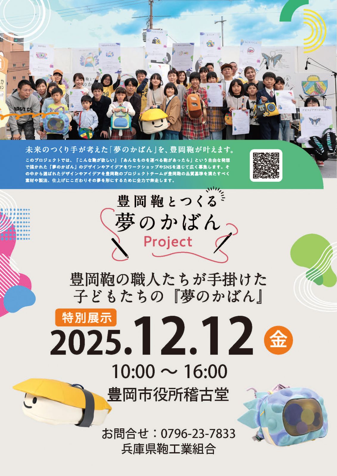 豊岡市内の鞄メーカーの職人技術と、未来を担う子どもたちの自由な発想が融合した「豊岡鞄とつくる夢のかばんProject」。その成果を披露する展示会を、今年も一日限定で開催いたします。